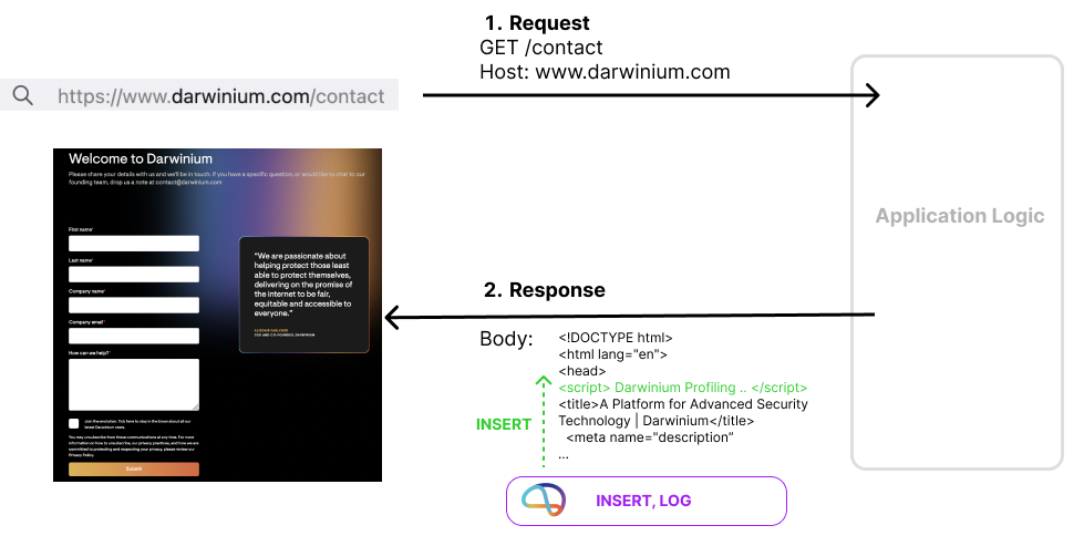 Insertion is useful for inserting the additional Darwinium profiling scripts into the body of returned website pages.