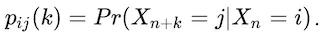 from specified steps i to j for any transition n as the i,jth element. Therefore we can create the probability transition matrix,