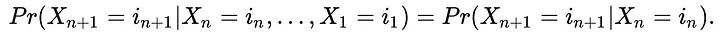 We can model the transitions by a customer as a process, X₁, X₂, …, Xₙ, traversing m steps, with the value of the nth step being iₙ ∈ {1, …, m}. Then we can model the journey probability by making a key assumption, the Markovian property, that the next transition only depends on current step that is
